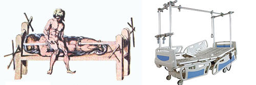 比如,治疗肩关节脱臼的病人,现在用的让脱臼复位的原理,依然是源于希波克拉底时代。他当时设计出了一种用于牵引固定的床。