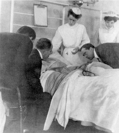 奥斯勒医生70岁的时候死于肺炎,按照他的遗愿,奥斯勒的遗体供年轻医生解剖。这是他为培养年轻医生,做出的最后努力。