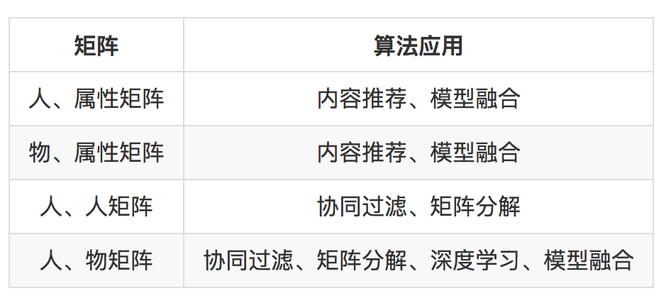 我把这些数据全都看成矩阵,有了矩阵,无论是内容推荐还是协同过滤,矩阵分解,还是机器学习深度学习,就都有了输入。