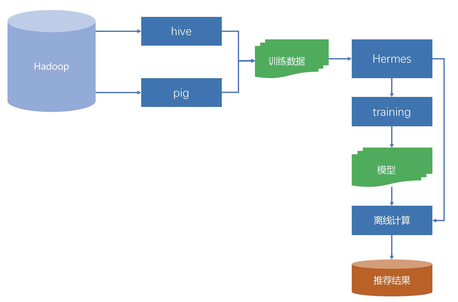 通过Pig或者Hive等工具,从全量日志中按照算法要求抽取出不同的数据,再加上其他数据变成了不同算法所需的数据源。