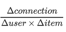 分子是增加的连接数,分母是增加的活跃用户数和增加的有效物品数。