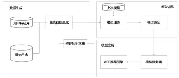 同时开始记录展示日志和用户行为日志,再把收集到的日志和用户特征、上下文场景特征、物品特征拉平成为模型的训练数据,训练新的模型,再用于后面的推荐,如此周而复始。