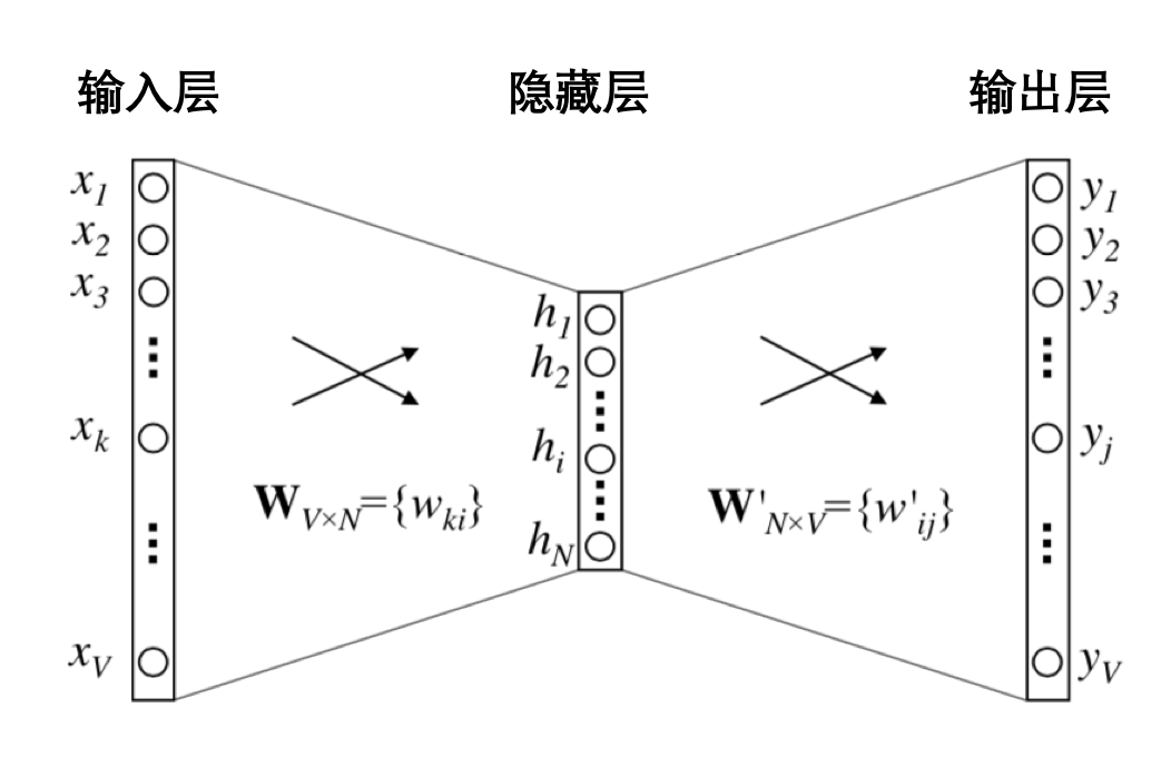 这里注意,看上去Word2vec是构造了一个监督学习任务,但实际上并不是为了得到一个预测模型,在实际中用词预测词,是为了得到词的嵌入向量,Embedding本身就是目的。