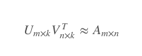 $$ U_{m\times{k}}V_{n\times{k}}^{T} \approx A_{m\times{n}}$$