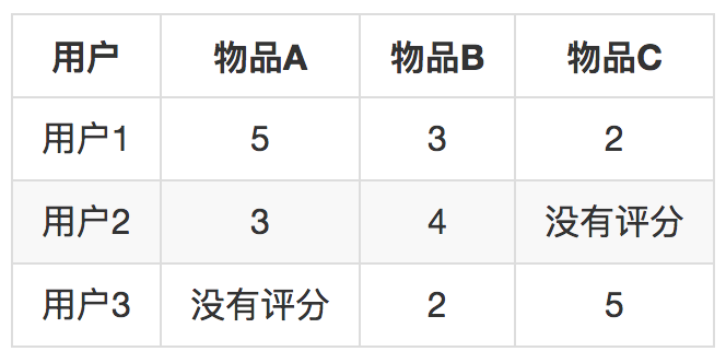 如果只知道用户3给物品B的评分是2,那么预测用户3给物品A的评分呢就是2.5,因为从物品B到物品A的差距是0.5。