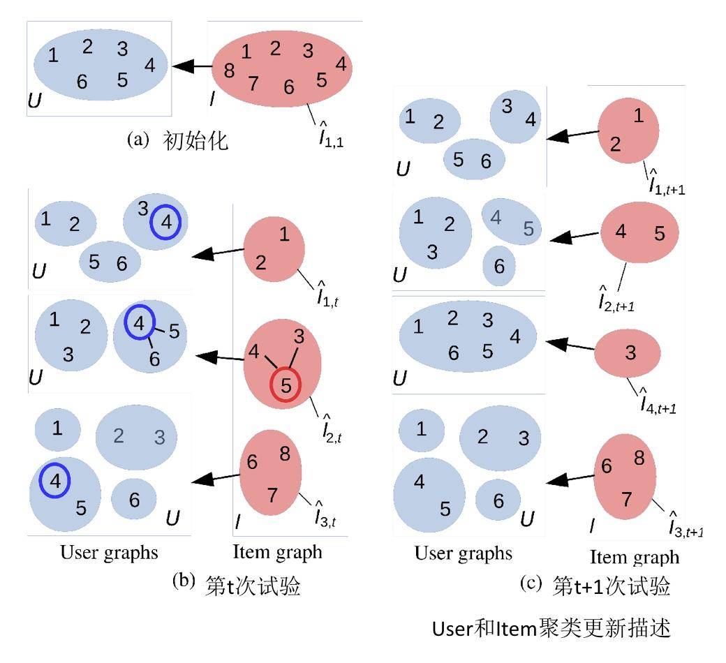 如何更新user和item的聚类呢?我在这里给出了一个示意图。