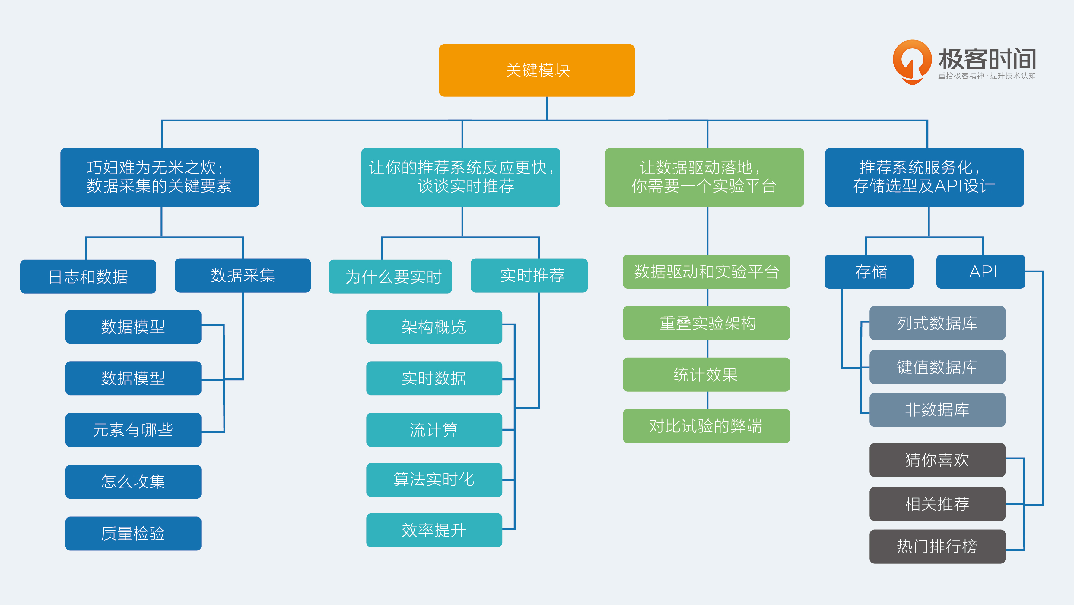 今天我主要讲解了推荐系统上线的两大问题,一个是线上数据存储,另一个是推荐系统的API有哪些。