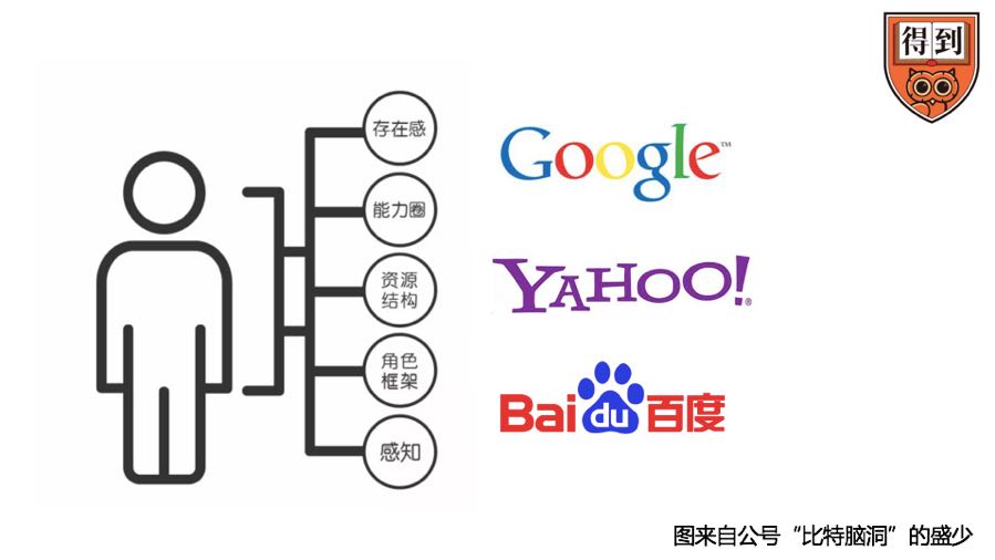 不管是人和人之间的交互,还是产品页面的调用,我们能够获取的内容、知识、服务是被角色和框架所限定的。曾经有一个百度内部人说,平均每十次搜索中,大概有七次会导向百度的内容池。这一层,百度能够提供的信息更密集,用户感知更好。
