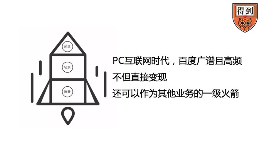 在PC时代,百度几乎是所有流量的入口,这是它强有力的一级火箭。但是到了移动时代,百度“流量入口”的价值被一再分割,一级火箭的基础不再牢靠。