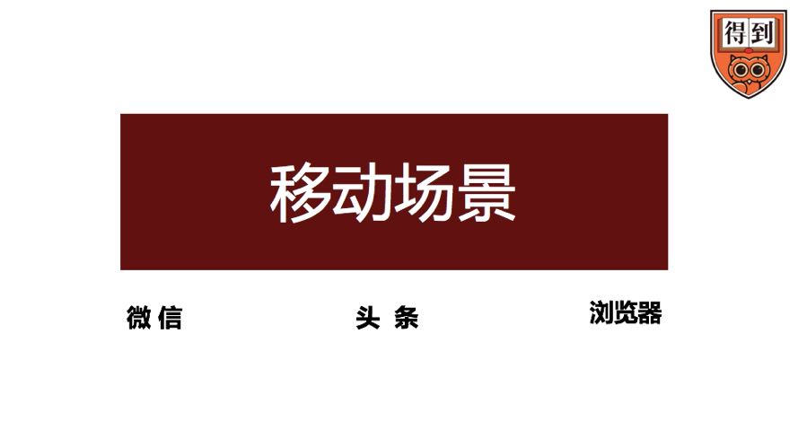 很多PC场景下的高频应用,在移动场景下已经变成了一个低频应用。曾经百度是PC场景下最高频的应用,但在移动场景下,百度已经不再属于最高频业务的范畴。