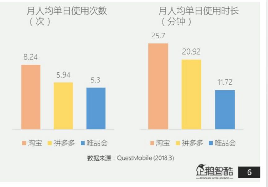 我们从这组用户黏度的数据中去分析原因,淘宝的用户黏度是来自于长时间的用户习惯,而拼多多的用户黏度则来自于它本身的业务特性,它主要卖的就是最高频的商品。