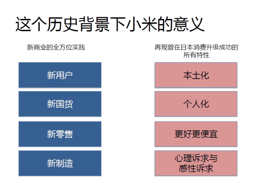 而我们要谈的主角小米,在新商业(新用户、新国货、新零售、新制造)这四点上全方位实践。