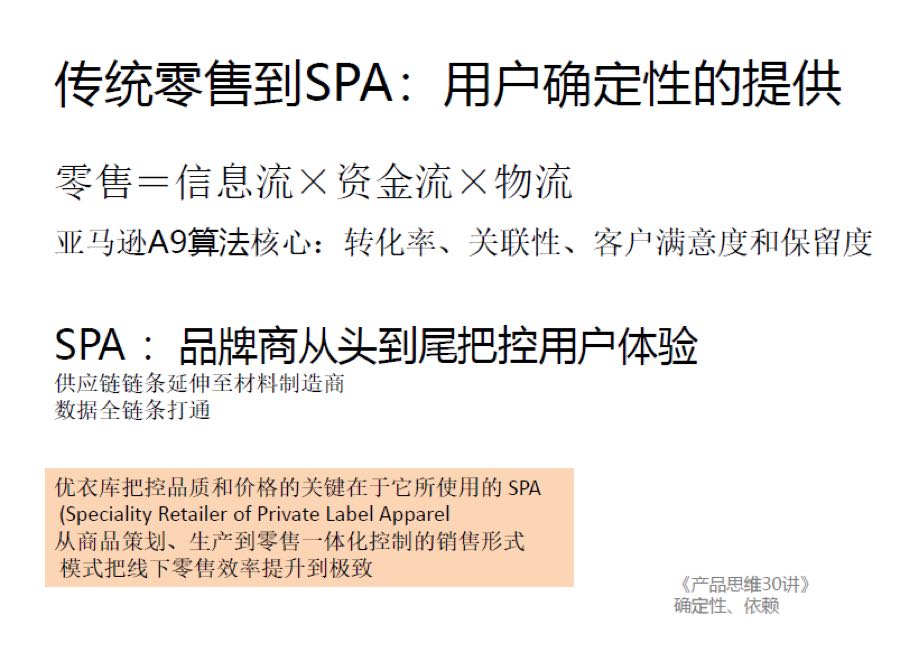 你要知道,一家户外品牌实体店不算很大,都有三四千个SKU存在。我要靠200个SKU撑起来,这个绝对是一个大数据选品的过程。 所以,小米新零售和流量、转化率、客单价、复购率这些维度,它其实已经在后端学习优衣库,从原材料供应商、产品策划、产品生产,一直到销售全部打通。