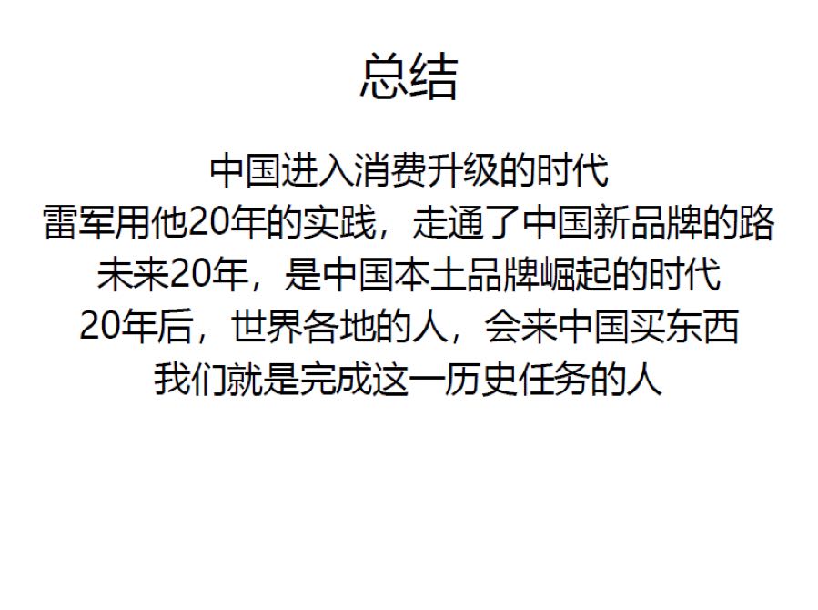 雷军用了20年时间走通了这个新品牌的路,新用户、新国货、新零售、新制造,其实都有所尝试,而这四个领域都会产生了不起的中国产业。