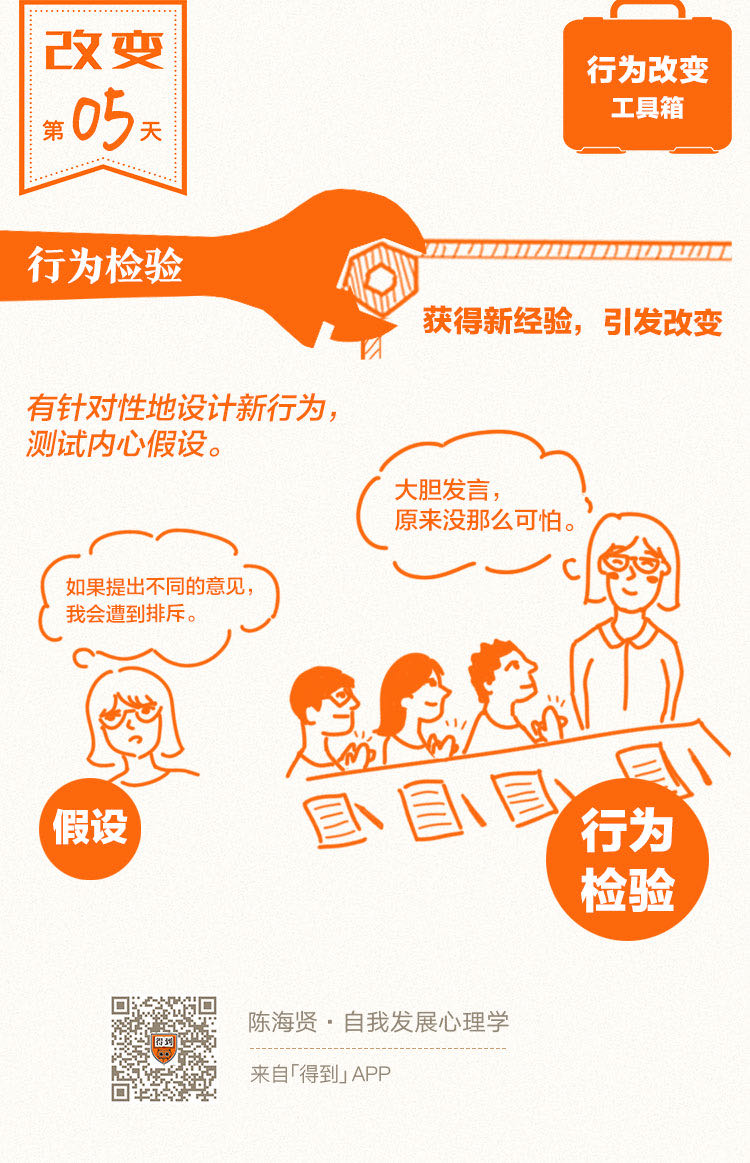 所以,如果要进一步地改变,我们还需要像一个行为科学家一样,有针对性地设计一些新行为,来测试这些基本假设。
