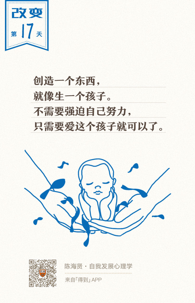 打一个比方,创造一个东西就像生一个孩子。生孩子的过程,并不需要你强迫自己努力,你只需要爱这个孩子就可以了。