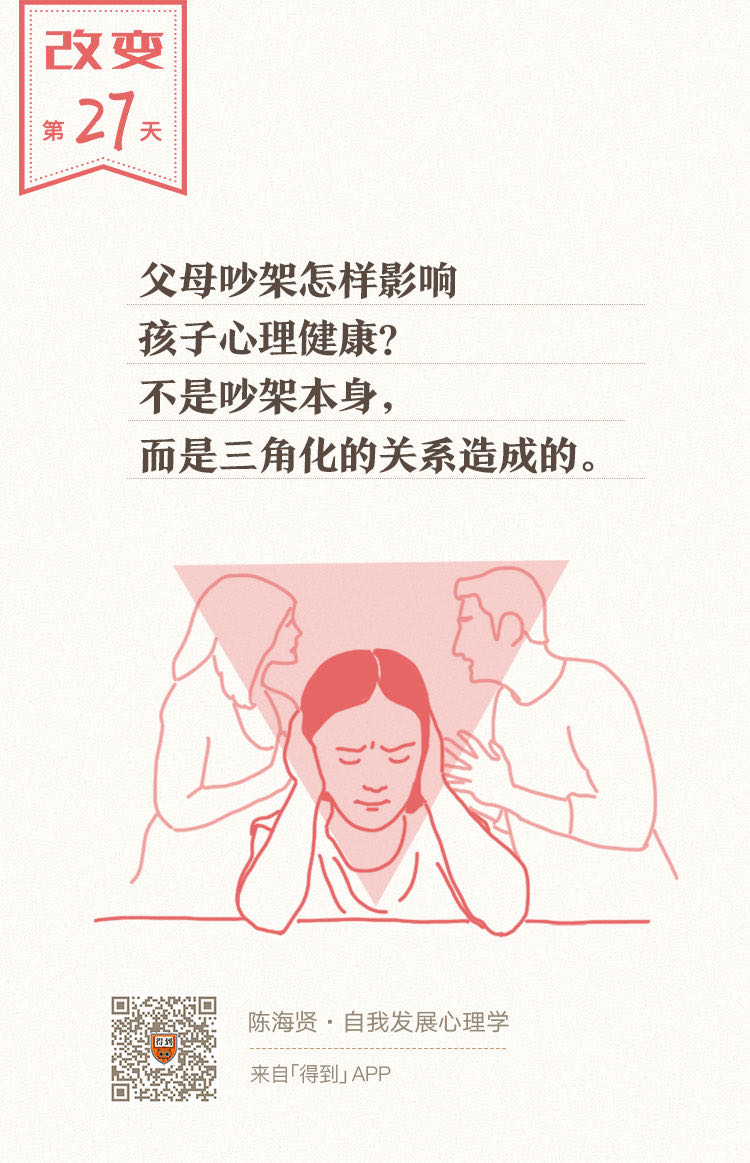 我们都知道,父母吵架经常会影响孩子的心理健康,怎么影响的呢?不是吵架本身,而是这种三角化的关系造成的。
