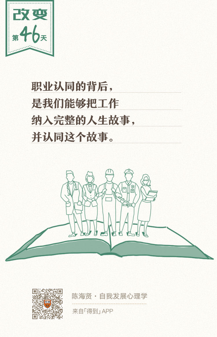 所以,职业认同的背后,是我们能够把工作纳入完整的人生故事里,并认同这个故事。