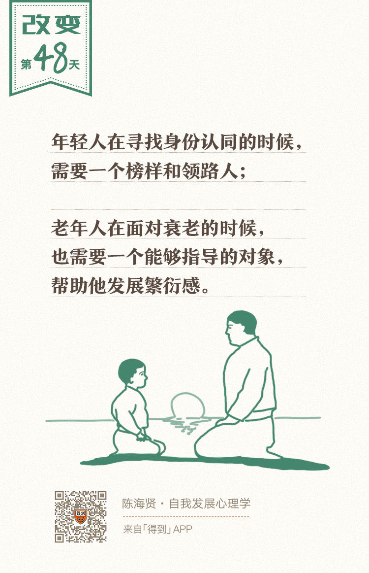 年轻人在寻找身份认同的阶段,需要一个榜样和领路人,而老年人在面对衰老的时候,也需要一个指导对象帮助他发展繁衍感。