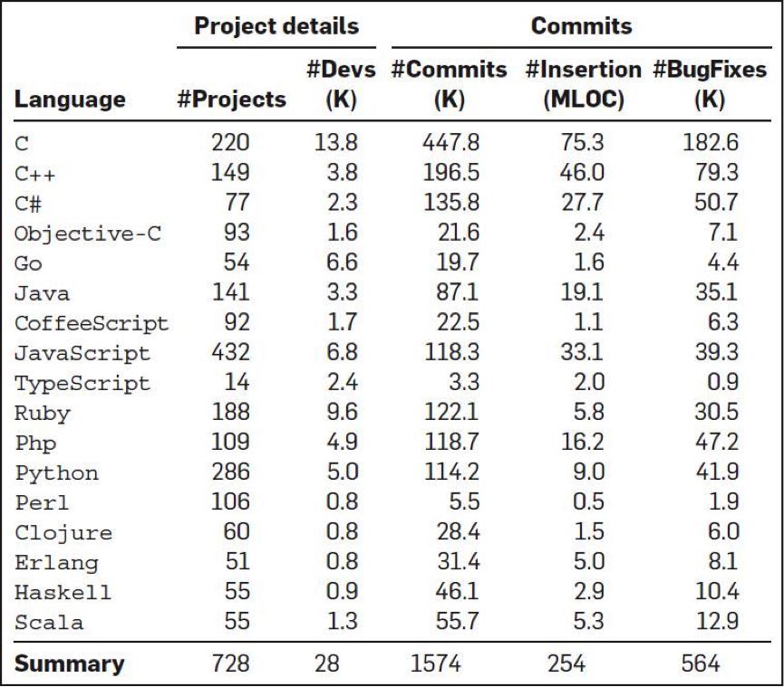 A Large-Scale Study of Programming Languages and Code Quality in GitHub,编程语言和代码质量的研究报告,网址为: