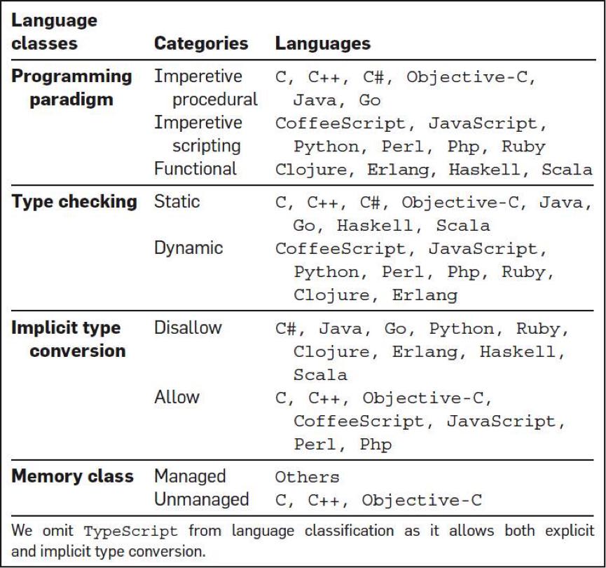 然后,他们还对编程语言做了一个分类,想找到不同类型的编程语言的 bug 问题。如下图所示: