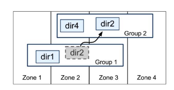Group 之间也有数据交互传输,Google 定义了最小传输复制单元 directory,是一些有共同前缀的 key 记录,这些 key 也有相同的 replica 配置属性。