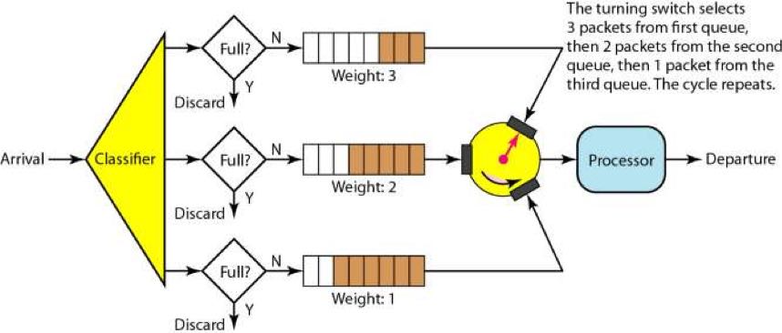 有优先级的队列可能会导致低优先级队列长时间得不到处理。为了避免低优先级的队列被饿死,一般来说是分配不同的比例的处理时间到不同的队列上,于是我们有了带权重的队列。