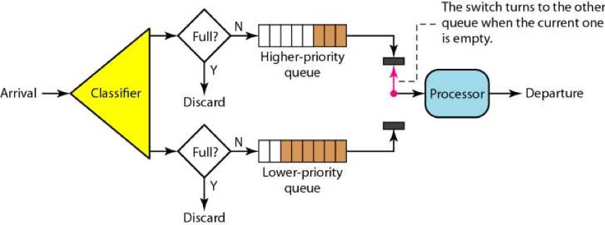 一个是有优先级的队列,处理时先处理高优先级的队列,然后再处理低优先级的队列。 如下图所示,只有高优先级的队列被处理完成后,才会处理低优先级的队列。