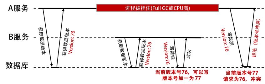 要解决这个问题,你需要引入 fence(栅栏)技术。一般来说,这就是乐观锁机制,需要一个版本号排它。我们的流程就变成了下图中的这个样子。