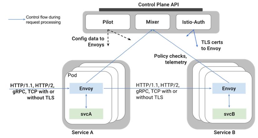 在 Service Mesh 控制面上,有一个叫 Mixer 的收集器,用来从 Envoy 收集相关的被监控到的流量特征和性能指标。然后,通过 Pilot 的控制器将相关的规则发送到 Envoy 中,让 Envoy 应用新的规则。