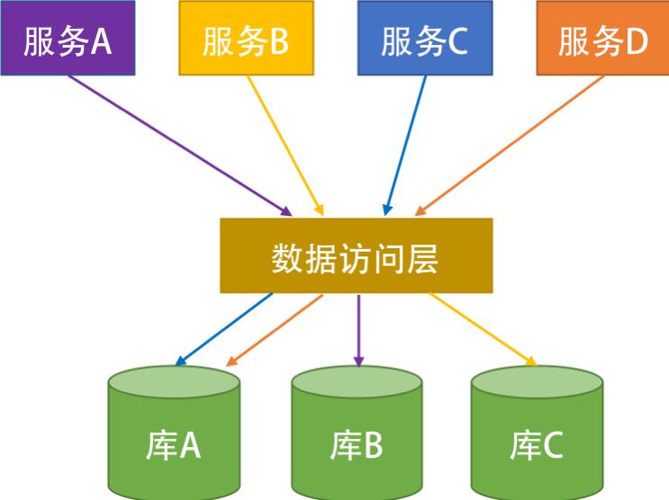 关于数据访问层。为了不让我们前面的服务感知到数据库的变化,我们需要引入一个叫 " 数据访问层 " 的中间件,用来做数据路由。但是,老实说,这个数据访问层的中间件很不好写,其中要有解析 SQL 语句的能力,还要根据解析好的 SQL 语句来做路由。但即便是这样,也有很多麻烦事。