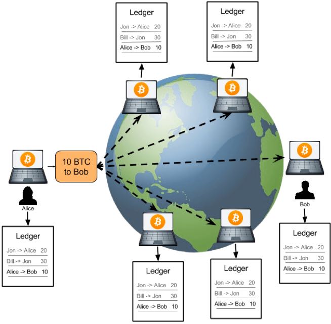 简单说来,相信区块链的人都相信,可以通过区块链这个技术来改变整个社会的组织形成——不再需要银行、中介机构、电商平台、支付宝等中间机构,人们可以通过一个不受任何人控制和操作的 P2P 金融系统,进行完全自由和可信的交易。