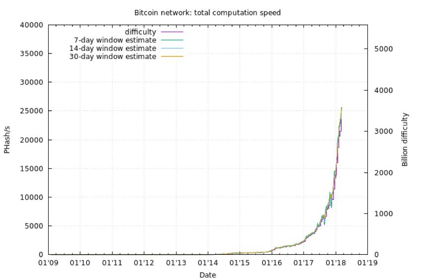 下图展示了整个比特币的难度历史。