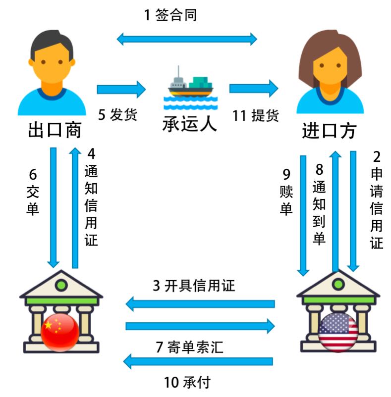 美国的银行向中国银行开具信用证,中国银行根本不关心进口方有没有把钱给了美国银行,反正你开了 200 万美金面额的信用证,我以后要问你要钱的。