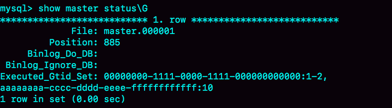 图5 show master status结果可以看到实例X的Executed_Gtid_set里面,已经加入了这个GTID。