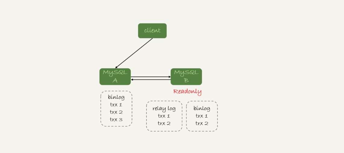 我们上面判断主备无延迟的逻辑,是“备库收到的日志都执行完成了”。但是,从binlog在主备之间状态的分析中,不难看出还有一部分日志,处于客户端已经收到提交确认,而备库还没收到日志的状态。