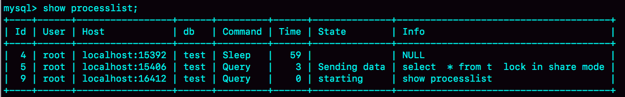 也就是说,“Sending data”并不一定是指“正在发送数据”,而可能是处于执行器过程中的任意阶段。比如,你可以构造一个锁等待的场景,就能看到Sending data状态。