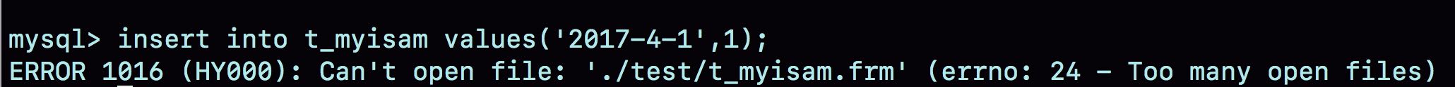 下图就是我创建的一个包含了很多分区的表t_myisam,执行一条插入语句后报错的情况。